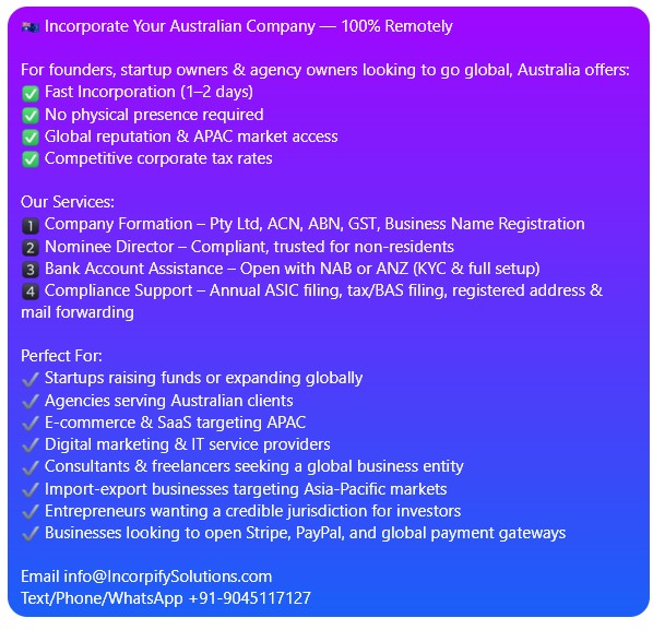 Businesses looking to open Stripe, PayPal, and global payment gateways Email info@IncorpifySolutions.com Text/Phone/WhatsApp +91-9045117127