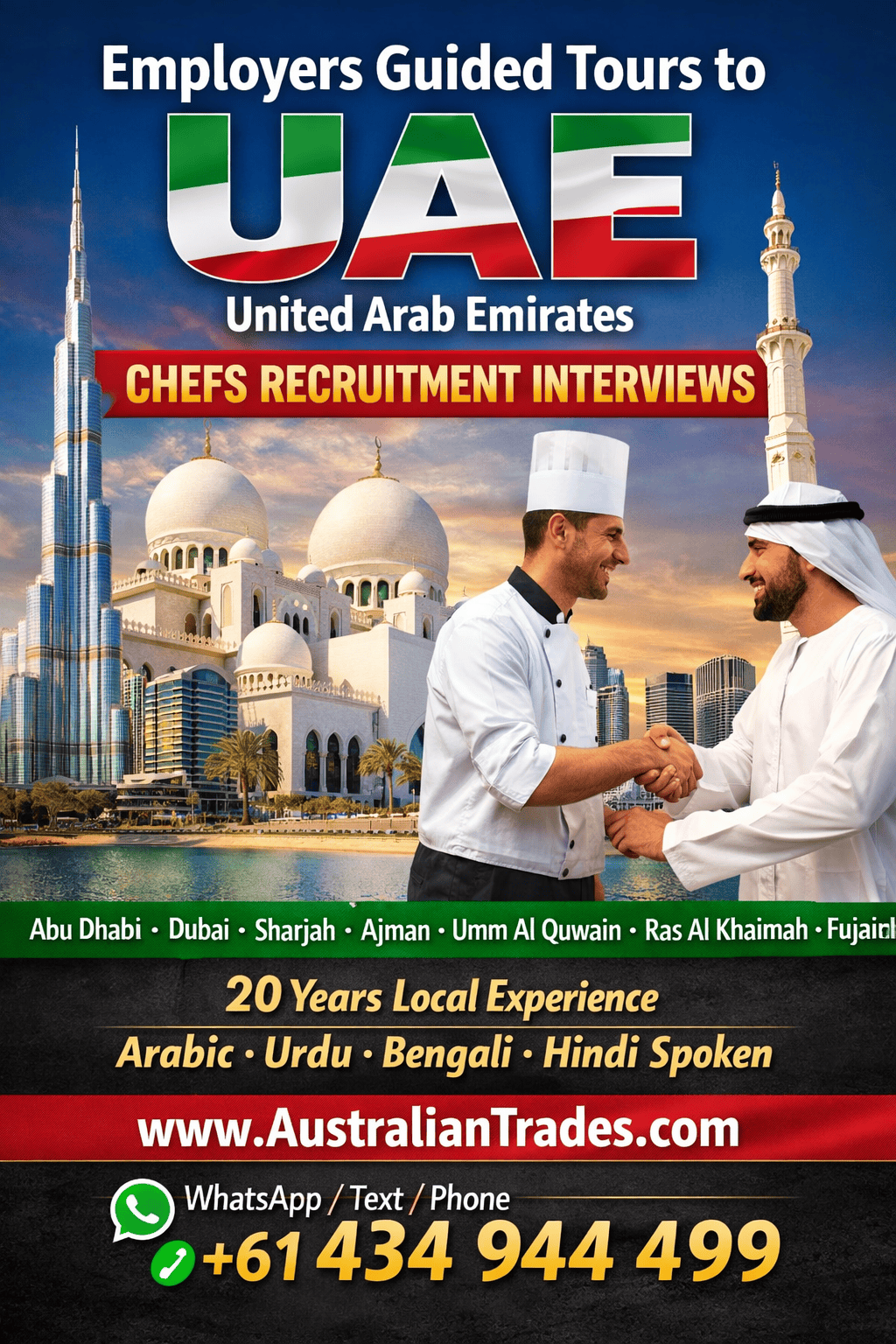 Employers Guided Tours to UAE United Arab Emirates for Chefs Recruitment Interviews